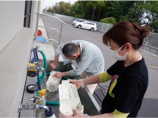 冬の間、大変お世話になった加湿器。ついにお別れの季節となりました。職員とご利用者様とで、加湿器にお礼を言いながらきれいに洗いました。来る活躍の季節まで、安楽の地で休んでいただきますzzz 「加湿器、片付けま~す」と声を掛けると、率先して動き始める頼もしいご利用者様方。とっても心強く感じました。おかげ様できれいになりました。