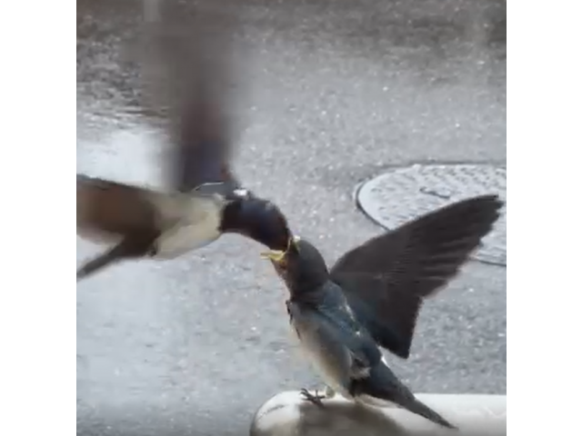 巣立ちに向けて、赤ちゃんが元気いっぱい頬張ります。