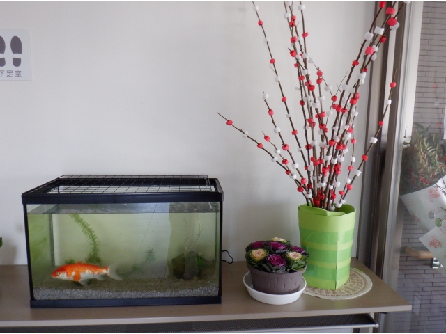 五穀豊穣を祈願する意味を持つ餅花。元気に過ごせるようにと利用者さんで作りました。 全国的には餅花(もちばな)と言うそうですが飛騨高山では花餅(はなもち)と呼ばれているそうです。小正月が終わった後には餅花を焼いて食べると1年間無病息災でいられると言われています。新生寮の餅花は残念ですがお餅ではないので焼いて食べられません。願いは餅と同じです。