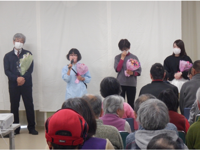 今年度も今日で終わりです。この時期は別れの季節であります。 本日のお別れ会で、転勤・退職する職員(4名)が、お別れのあいさつをしました。 「利用者の皆様、大変お世話になりました。どうか、これからも、お体に気を付けて、楽しい寮生活をお過ごしください。 別れがあると新しい出会いがあります。4/3に新しい職員がやって来ます。私たちと同様、よろしくお願いします。」