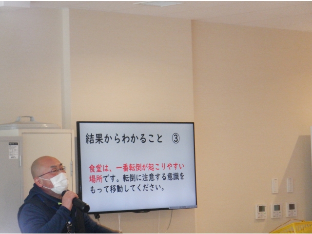 時間別の各場所での転倒率の結果を御利用者様へ周知させていただきました。