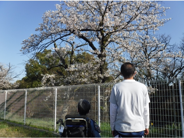午後のうららかな日差しの中、利用者様と一緒に桜を見に行きました。例年より少し早い開花であったため、今日は満開が過ぎ、ちらほらと花弁が散り始めていました。一陣の風が吹き、花弁が散ると、「きれい」という言葉と、嬉しそうな満開の笑顔を見ることが出来ました。