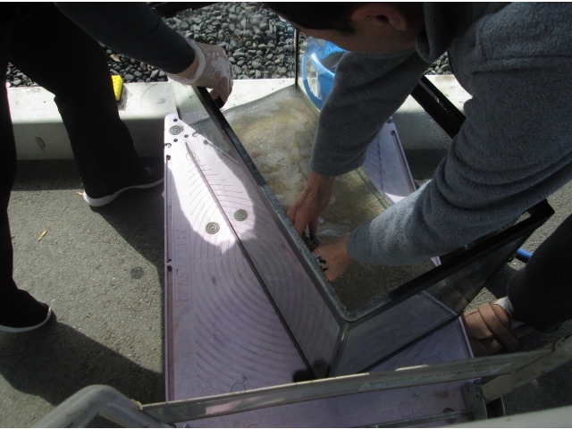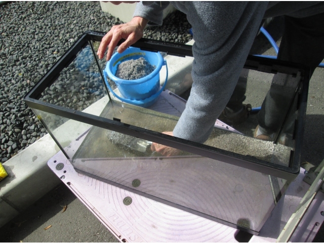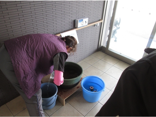 心地よい日差しの中、金魚・メダカの水替えを行いました。金魚は1か月ぶり、メダカは1年ぶりの水替えで、よく見るとメダカは卵を産み付けていました。綺麗になった水槽で元気に泳ぎ喜んでいるようで、また利用者様からも「綺麗になって良かったね」「気持ちよさそうだね」と満足されていました。