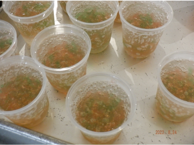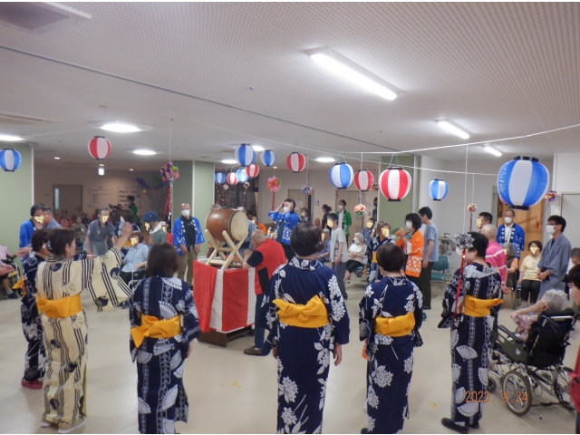 2年ぶりの納涼夏まつりを開催しました。昨年はコロナで実施できませんでしたが、今年は皆さんで盆踊りをして楽しい時間を過ごすことができました。一生懸命踊った後に冷たくて美味しいソーダゼリーをいただきました。