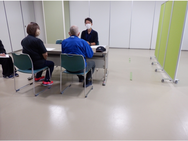 見学後に会場ごとに分かれて、福祉事務所のご担当者と利用者様の懇談会を実施しました。それぞれ生活の様子や今後の希望などをお伝えされていました。