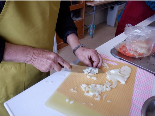 令和5年度最後の料理クラブを行いました。12月感染症のため延期になりました(泣) みなさんの希望の献立でハンバーグです。玉ねぎをみじん切りにし、お肉をこねることに苦戦しました。出来上がりは柔らかく、ジューシーに焼けました(笑)