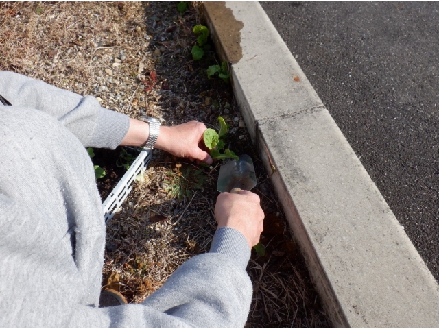 先週は雪でしたが・・。本日はうってかわって暖かい日でした。 プランターに種まきした菜の花が雪にも負けず元気に育ったので植え替えをすることに。有志の利用者の方々と職員で協力しておこないました。正門の植え込みに並べました。うまく根付きますように・・