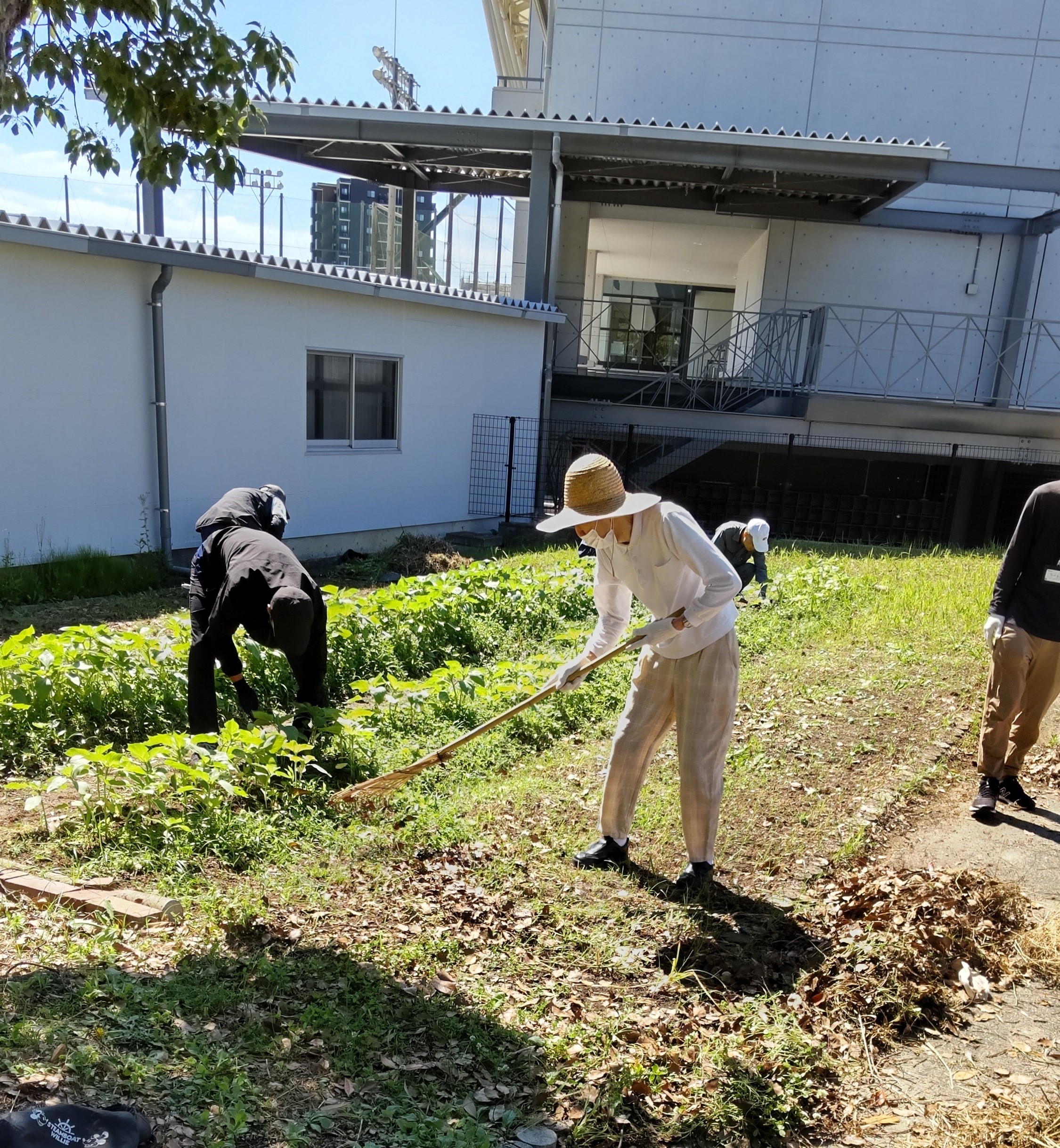 ならわ思いやり隊に参加し、成岩中学校の草取りや落ち葉拾いを行いました。