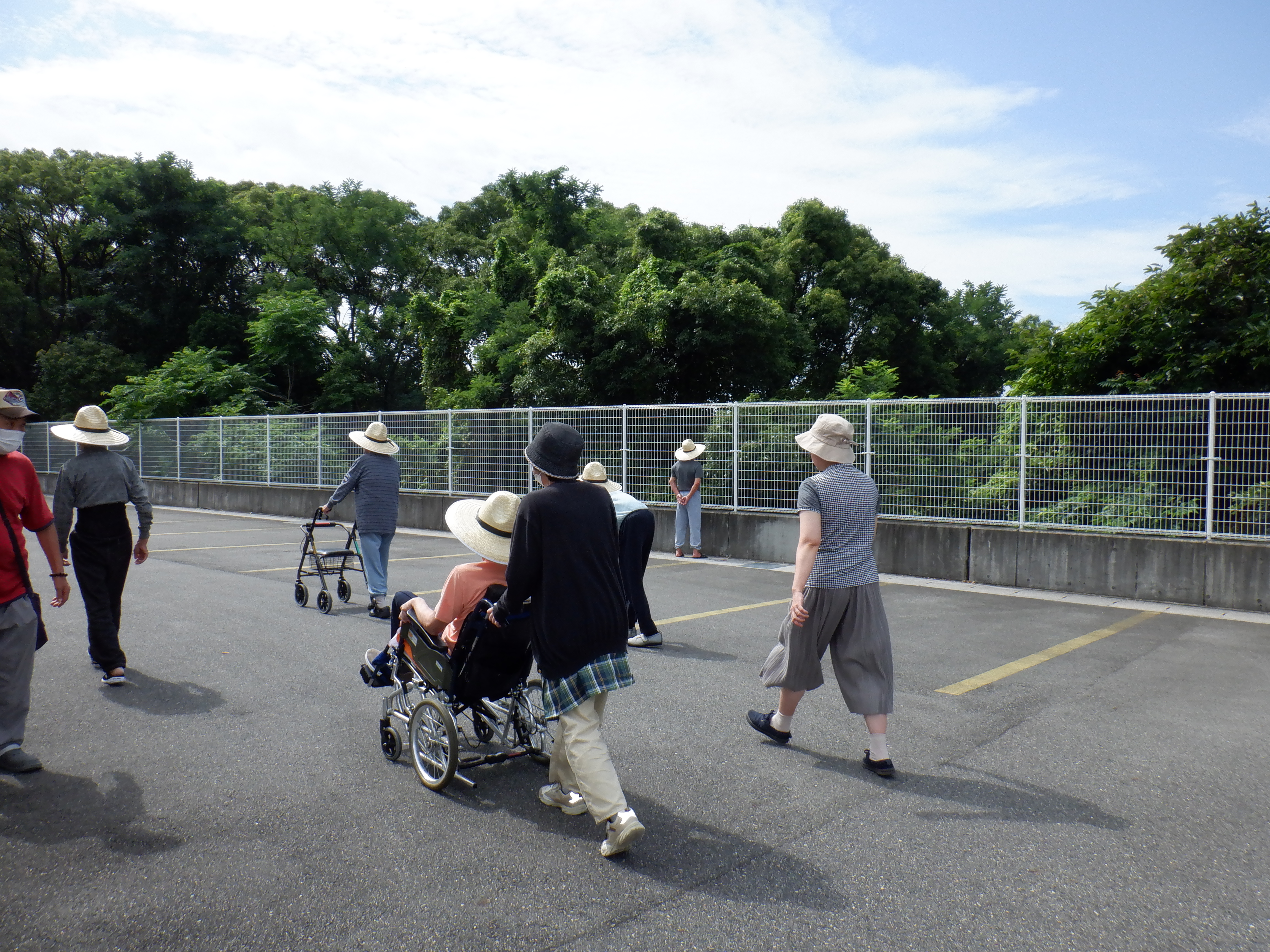 熱中症予防のため麦わら帽子👒をかぶって散歩をしています。