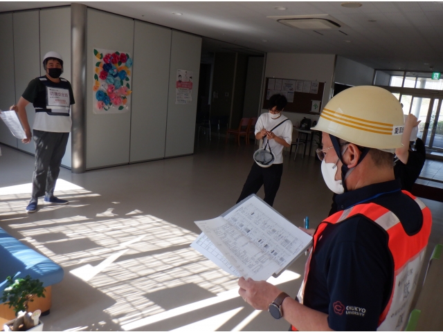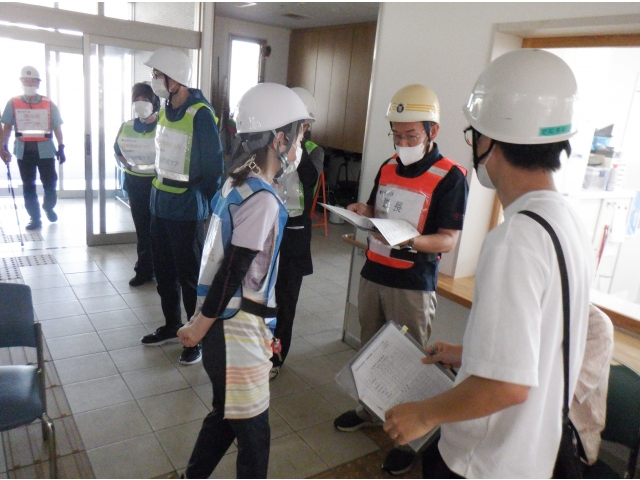 地震時のシェイクアウト、火災時の避難経路を確認しながら、