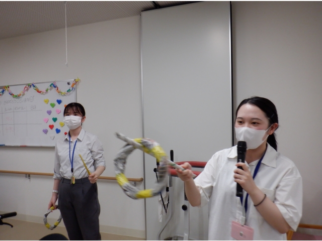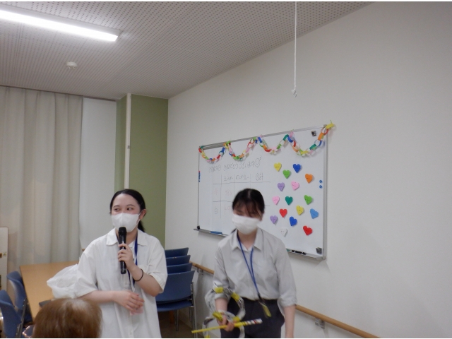 誕生日茶話会前に実習生によるお祝いの催し物が開催されました。