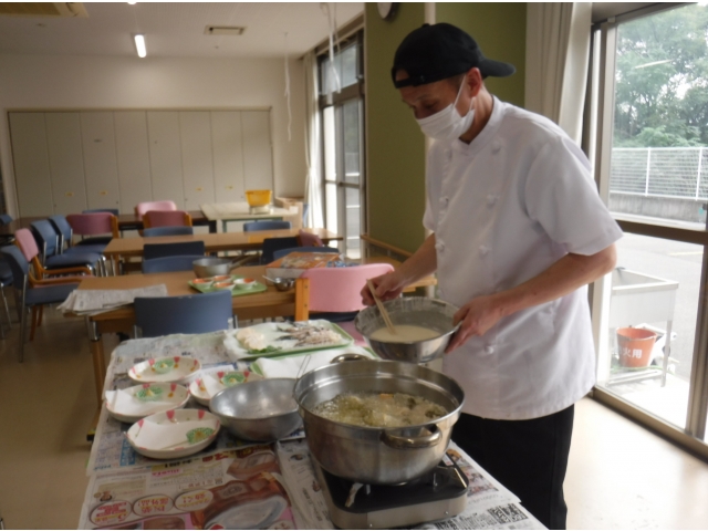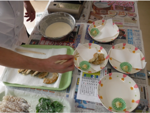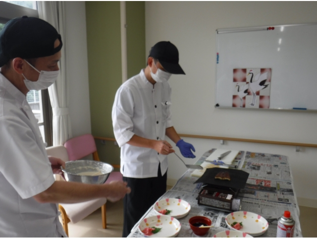 ステーキ、うなぎの蒲焼、季節の天ぷらを板さん?が目の前で調理して提供。