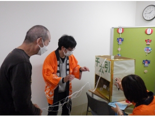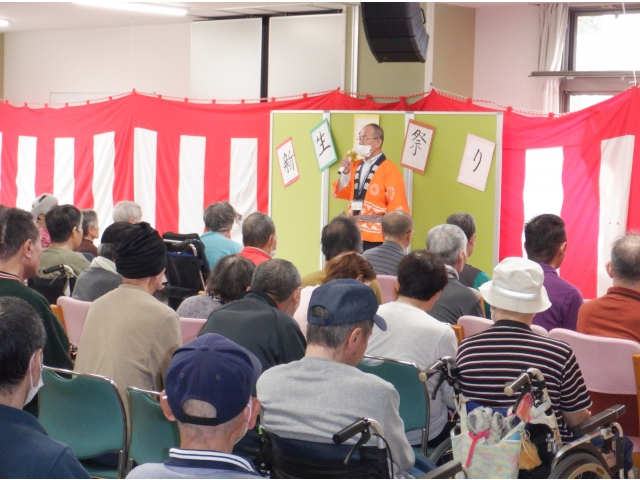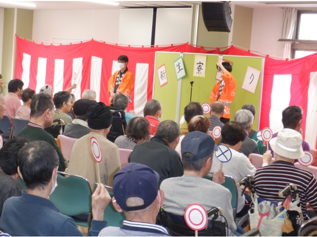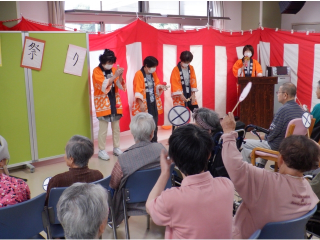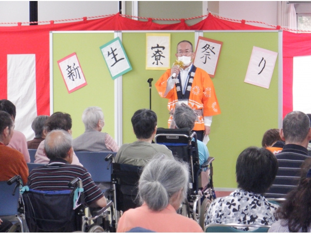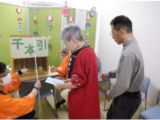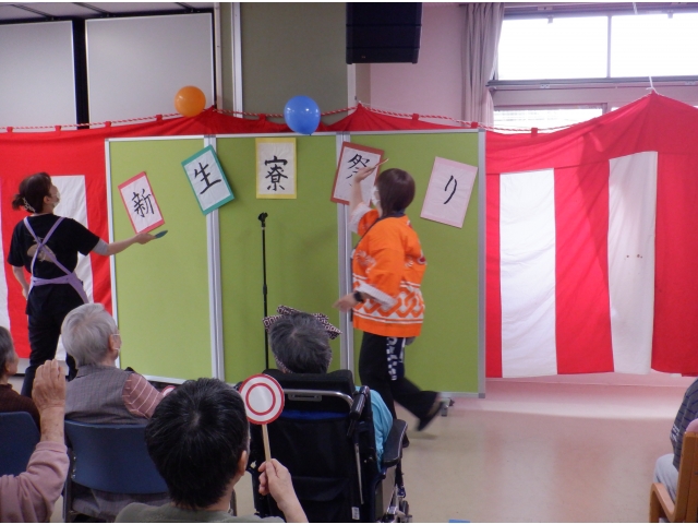 一年で一番大きな行事「新生寮祭り」が行われました。「〇×クイズ」「輪投げ」「ボール投げ」「千本引き」「カラオケ大会」「厨房さん手作りおしるこ」を満喫され、ご利用者様の沢山の笑顔に触れることができました。