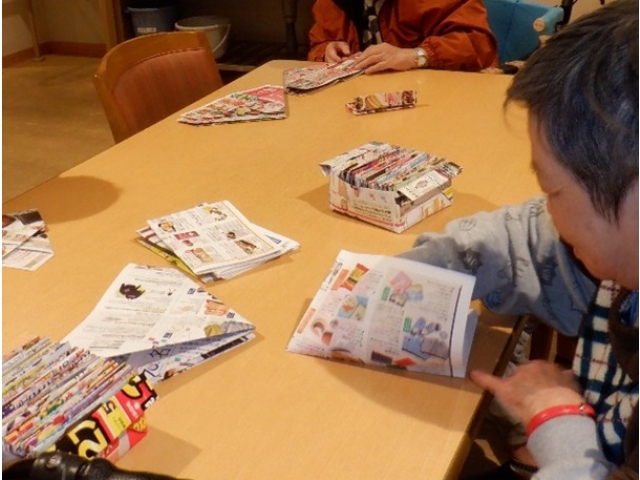 毎日コツコツと広告で箱を折り、新聞紙はすぐに使える大きさにたたみました。