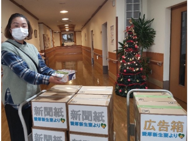 愛厚ホーム西尾苑に新聞と広告箱を寄贈しました。