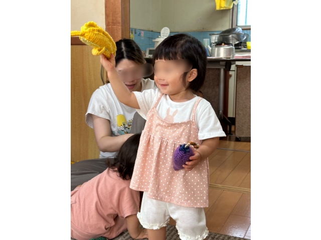 ❤ K.M様は、編み物好きの編み物上手 ❤「私が余った毛糸で野菜を作ったから」と提供を受けました。前回と同様に名古屋市内のNPO法人の子育て支援団体へ声をかけたところ快く受け入れていただくことができました☺後日、NPO法人より写真の提供がありました。