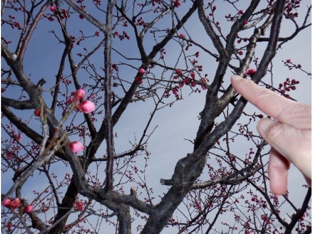 - 帰りは「ほら咲いてるよ」と梅の花を
