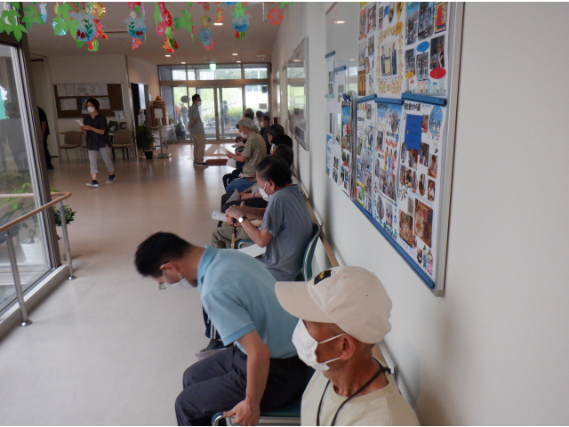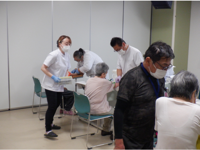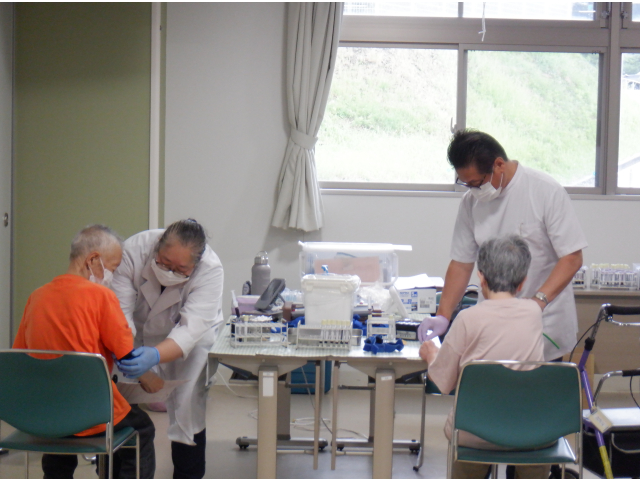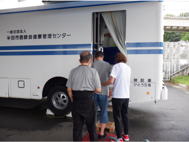 年に一度の ご利用者さまの健康診断。採尿や採血、胸部のレントゲン撮影と、半日かけて行ないました。あいにくの大雨の中、半田市医師会健康管理センターの職員の方に手際よく検査を進めていただきました。さて、診断結果は・・・