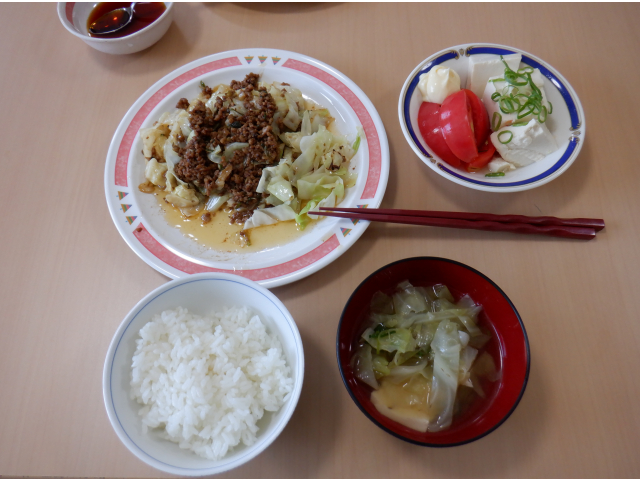男性利用者2名で料理クラブをおこないました。メニューは、ホイコーロー、トマトサラダ、中華スープ、ごはん です。暑い夏はがっつりした中華、いいですよね。楽しい、おいしい!うれしい!・・・で完食でした。次回も楽しみです。