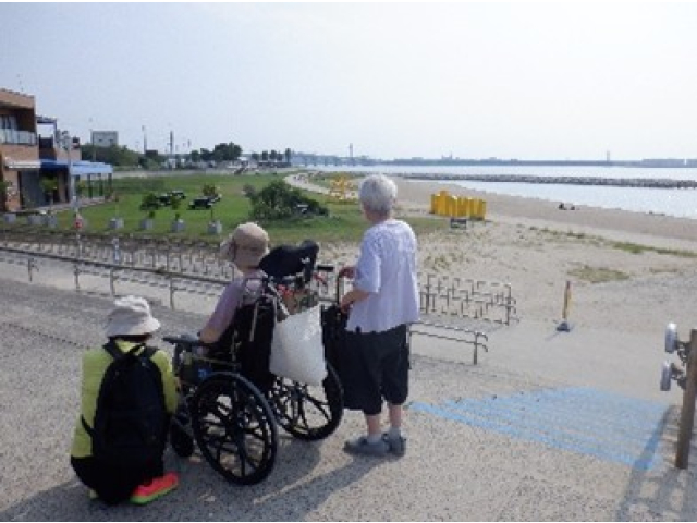 9月17日に常滑のりんくうビーチに行って来ました。まだビーチにはちらほらと泳ぎを楽しんでる方がいました。ビーチからセントレア空港へ降りる飛行機を眺めたりすると「私、飛行機乗ったことがあるわ!」と皆さまの昔話を聞いて盛り上がりました。