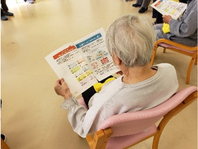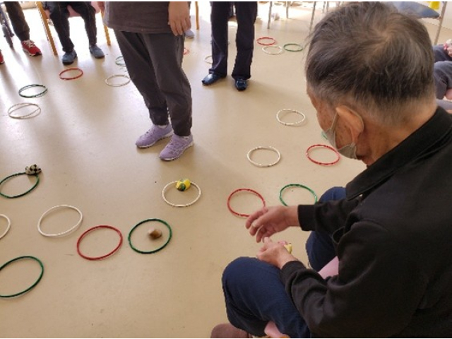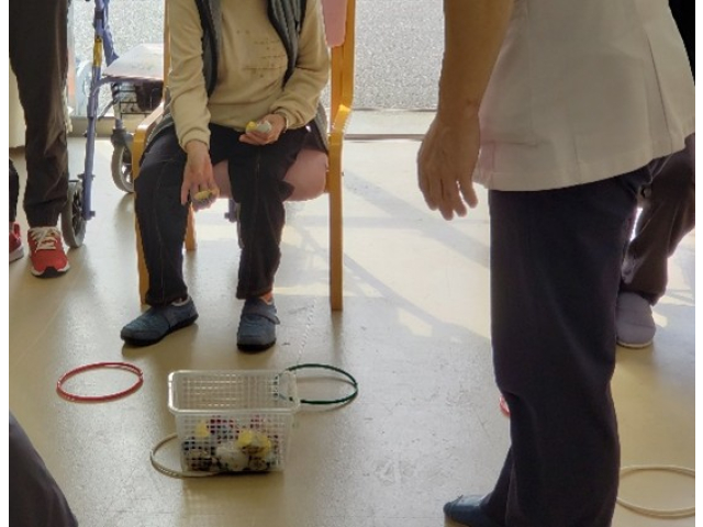 10月23日に済生会名古屋リハビリテーション病院より理学療法士の先生2名をお招きし、タオルやお手玉、風船などを使ってレクリエーションを兼ねた運動をしました。時折笑顔も見られ、楽しく1時間を過ごすことができました。