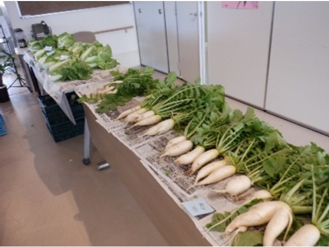 農耕クラブが育てたお野菜を午後から収穫し、玄関前で職員に販売しました。