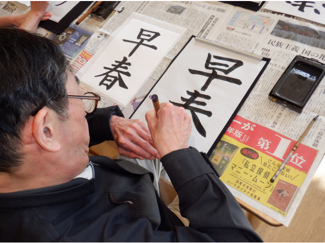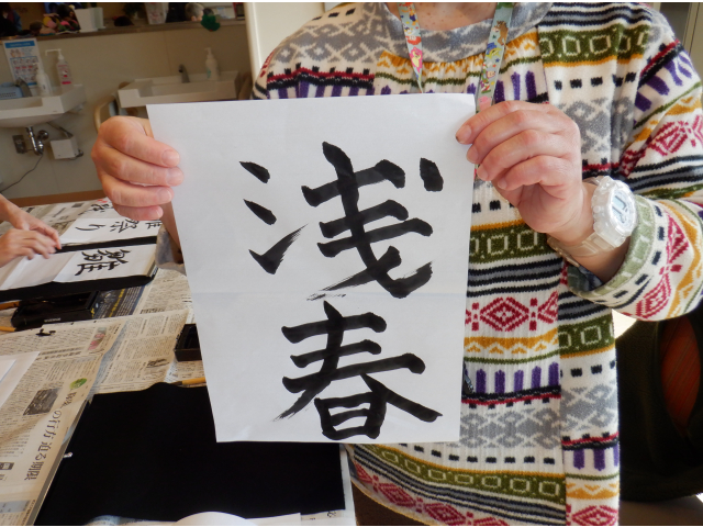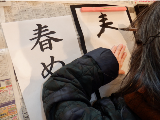 窓の外では粉雪の舞う一日でしたが、春を感じる書を書きました。