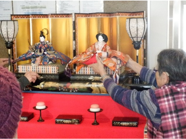 利用者様と一緒にひな飾りをしました。