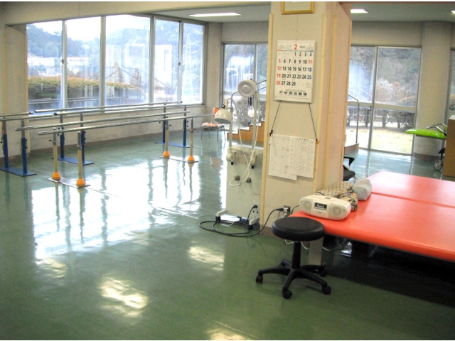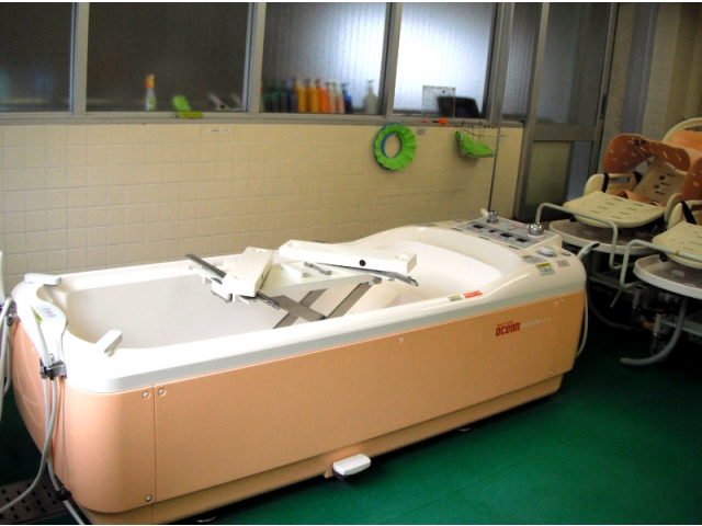 居室はカーテン等でプライバシーに配慮した多床室で、浴室は利用者が安心して入浴できる特殊浴槽を設置。機能訓練室では、ケアプランに基づき専門職員がリハビリを実施しています。