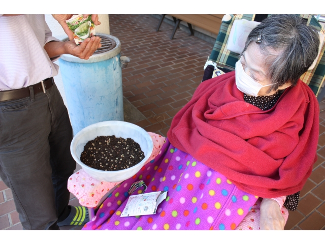 今日は利用者さんと一緒にかいわれ大根の種を植えました。 かいわれは通常かいわれ大根は水耕栽培しますが、今回は土で挑戦します。 土での栽培は始めてやってみますが、さて、どうなるでしょうか。
