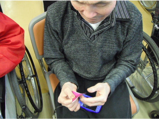 クリスマスイブということで、職員によるハンドベル「ジングルベル」の演奏から始まりました。素敵なハンドベルの音色を披露してもらいました。利用者のみなさんからも大きな拍手を頂きました。