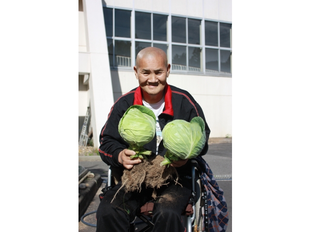利用者のS様が丹精こめて育てたキャベツが 立派に大きく育ちました。