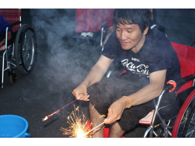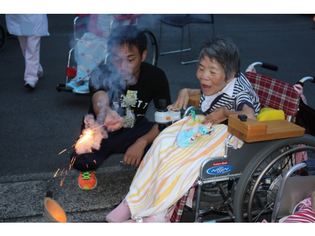 夜は涼しい夜風に吹かれながら花火を楽しみました。