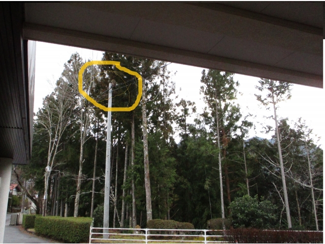 電柱のてっぺんにかけ上り、人間を見下ろしていました。