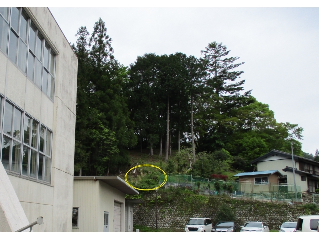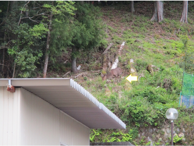 一昨年の台風で杉が折れ、日当たりがよくなったところに生えた草を食べに