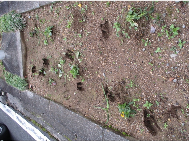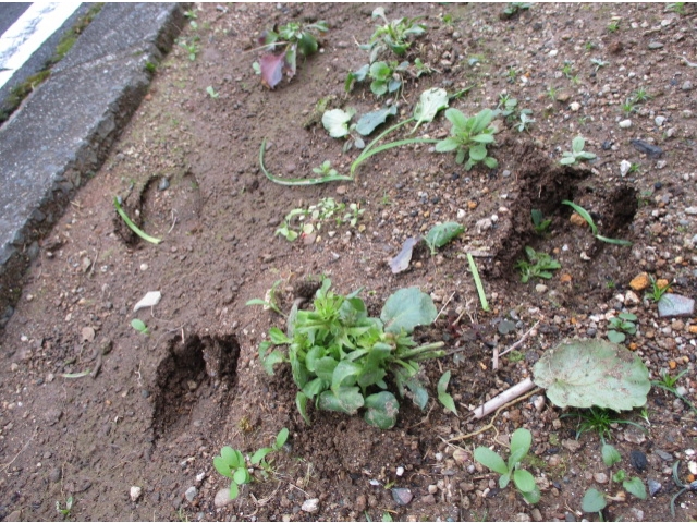 すぎのきの里の駐車場の真ん中にある 小さな花壇が踏み荒らされ 植えてあった花が食べられてしまいました・・・