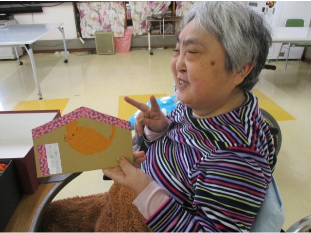 今年の干支であるねずみの貼り絵に ねじって立体感を出したしっぽをつけました! 「〇〇に外出したい。だんなと一緒に」 「元気でおれますように」 「〇〇さん(大好きな歌手)がんばって!」など 思い思いの願いを書き込みました。 願いがかないますように! 愛厚すぎのきの里広報担当