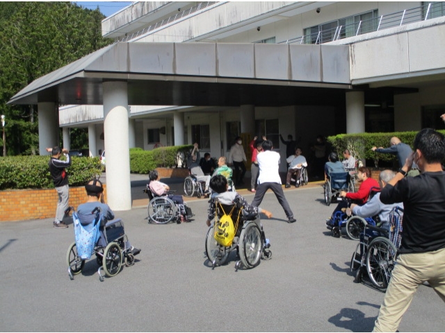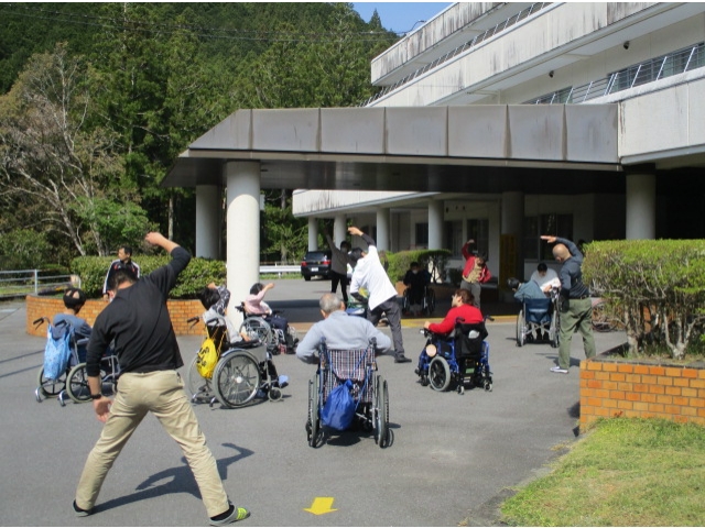 すぎのきの里の日課は、ラジオ体操から始まります。 体力の向上、健康維持、年齢を問わず誰にでも気軽にできる体操なので、職員も参加して凝り固まった体をほぐし、仕事に臨んでいます。 最近は天気もいいので、外に出てやることが多いです。※感染症対策には十分注意して行っております。