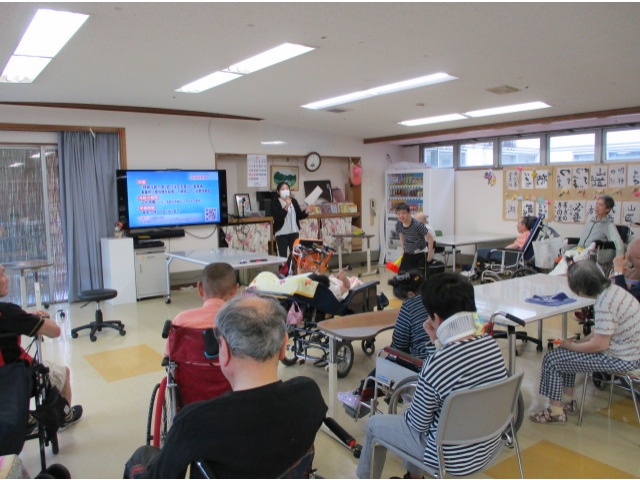 10月の外出行事等の予定や、すぎのき祭の開催方法について説明をさせていただきました。利用者さまからも、すぎのき祭のメニューは「納豆がいい!」、「おにぎりが食べたい」などのご意見もいただき、計画の参考にさせていただきます。※今年度のすぎのき祭は、利用者さまと職員のみで実施させていただきます。