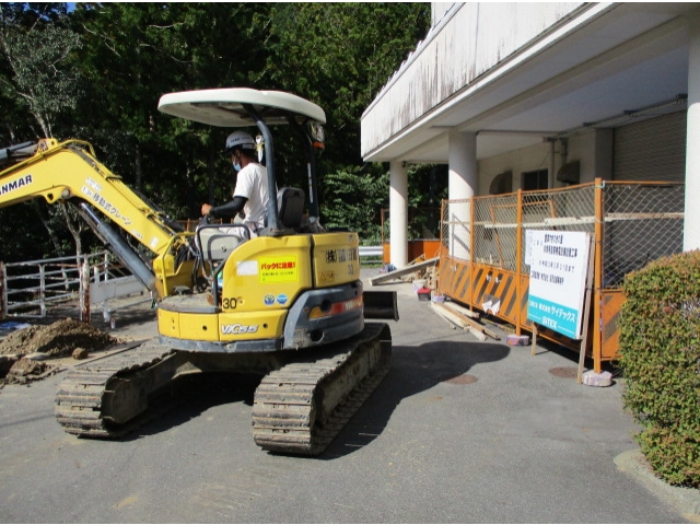 災害により停電となった場合でも、照明を点灯、揚水ポンプ・浄化槽等を稼働させ、利用者さまの支援を継続して行えるように、「非常用自家発電設備」を今年度中に設置します。そのための工事が着々と進んでいます。