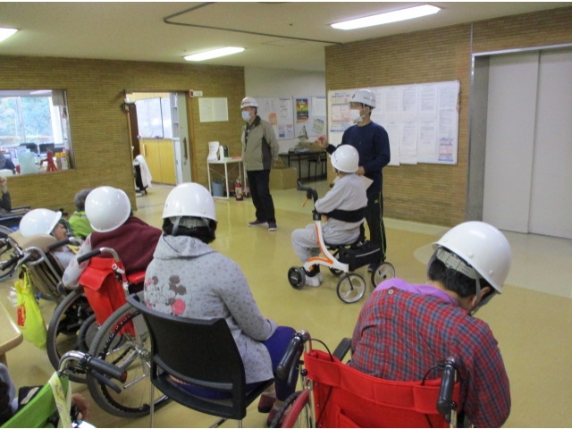 毎月防災訓練を行っていますが、その都度訓練対象となる部屋を変えて、1年に1回以上はみなさん訓練に参加できるように計画しています。