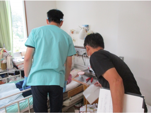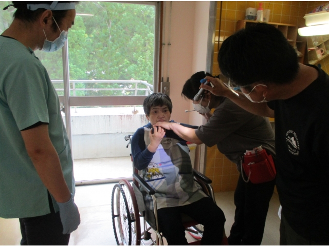今週も「よつば歯科クリニック」の先生から、利用者様へ個別歯磨きチェックなどの口腔状態の確認と、職員に対しては口腔ケア方法の指導をしてもらいました。 生活支援員、看護師、リハビリ職員など、多職種が連携して口腔ケアに取り組んでいます。