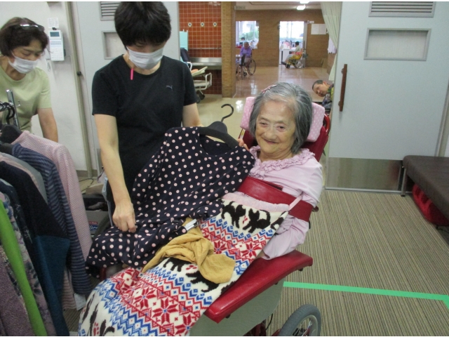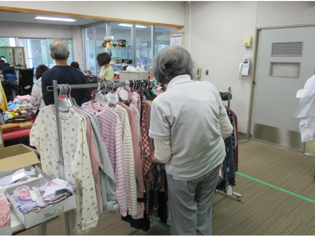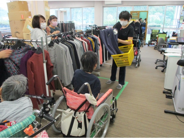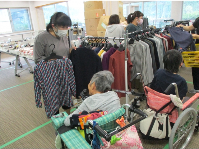今年度も東栄町にある衣料販売店さんに、出張販売をしていただきました。購入の順番は男性が最初で、その後女性と決まっています。なぜなら男性はササっと、女性はジィッーーーくりと時間をかけて、何度も手に取ってから購入するか決められるので、ものすごーく時間がかかってしまうからです。結果:みなさまの満足そうな顔を見ることができました。