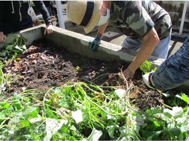園芸班の活動は、季節によって様々です。今回は、大事に育てた「さつまいも」の収穫をしました。大きなさつまいも!ではありませんが、蒸かして食べてましたが味はたしかでした。