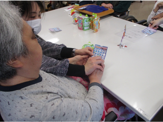 豪華景品を目の前にし、利用者の皆さまは番号が読まれるのをジッと待ち、自分のカードを何回も何回も確認されていました。