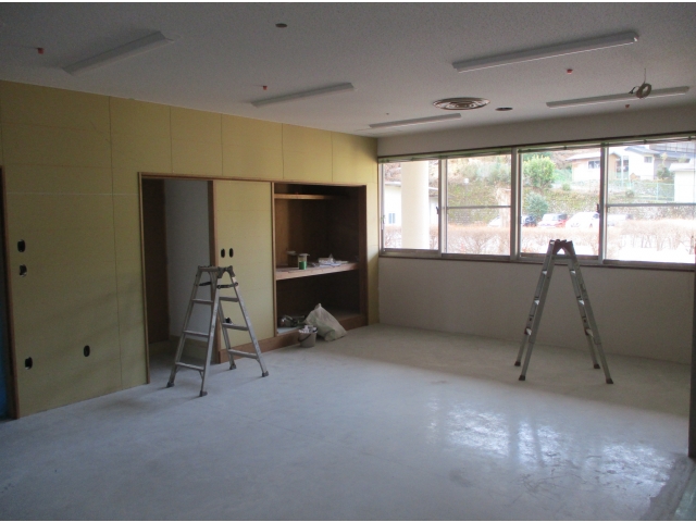 使用できなくなっていた和会議室をフロア化することにより、面会、オンライン会議、業者さんとの打合せ場所等々としてのスペースを確保することができます。あと少しで完成です!!