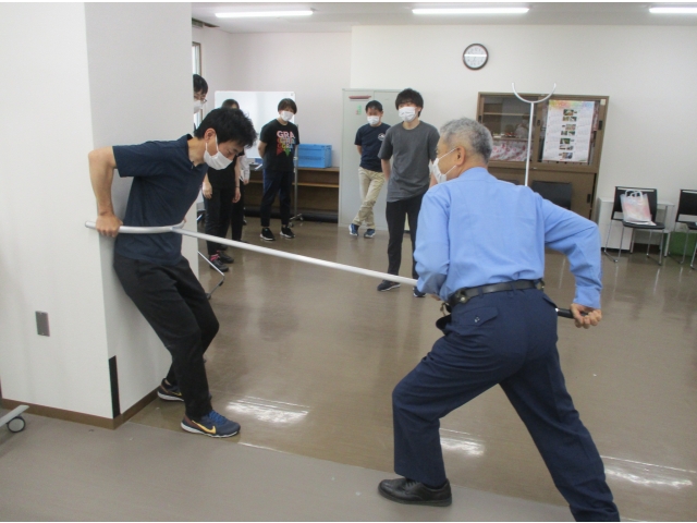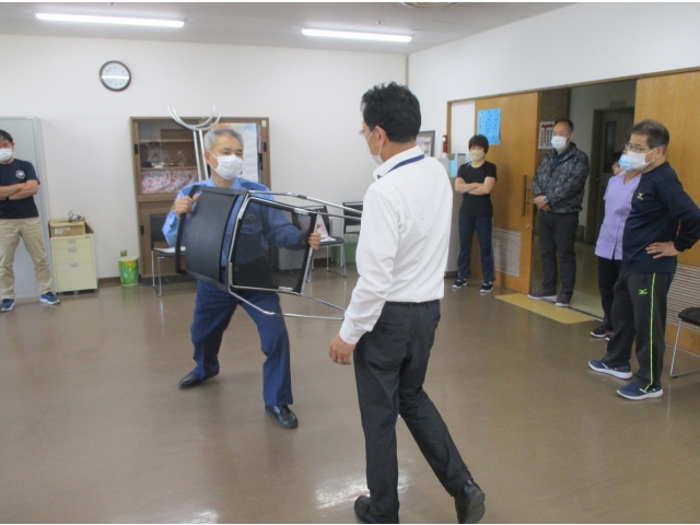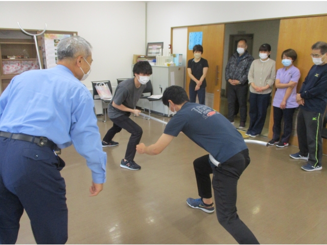 愛知県設楽警察署生活安全課の協力により、施設における防犯対策等の訓練を実施しました。昨今、何が起きるか分かりません。あらゆる状況に対応できるように日々訓練を行っています。(安心・安全のため!)併せて、女性の多い職場なので護身術も学ぶことができました。