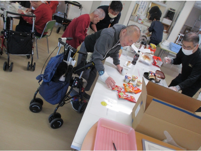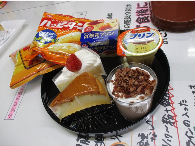 2階食堂で喫茶店を開店しました。ケーキにプリン、スナック菓子まで選べます。健康を考えた低糖質プリンも用意しました。皆さん、好きなお菓子を選んで、午後のティータイムを楽しまれていました。