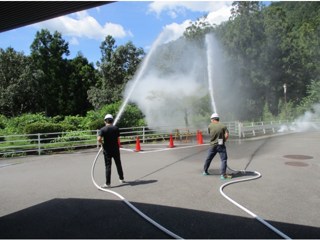 訓練の内容は、午前5時からの東海地震注意報の発表から始まり、非常呼集、自衛消防隊設置、地震発生、避難誘導、火災発生、消火活動、東栄町役場との衛生電話による連絡など、考えられるすべてを詰め込んだ内容でありました。