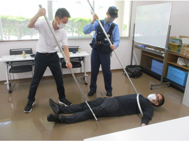 愛知県設楽警察署三輪駐在所のご協力により、施設における防犯対策等の訓練を実施しました。昨今、何が起きるか分かりません。あらゆる状況に対応できるように日々訓練を行っています。